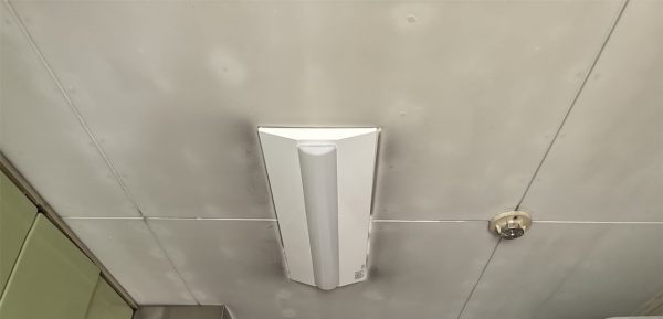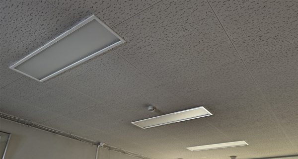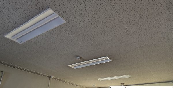 工事はまず既存の照明器具を取り外し、天井にLED照明を取り付ける作業を行いました。